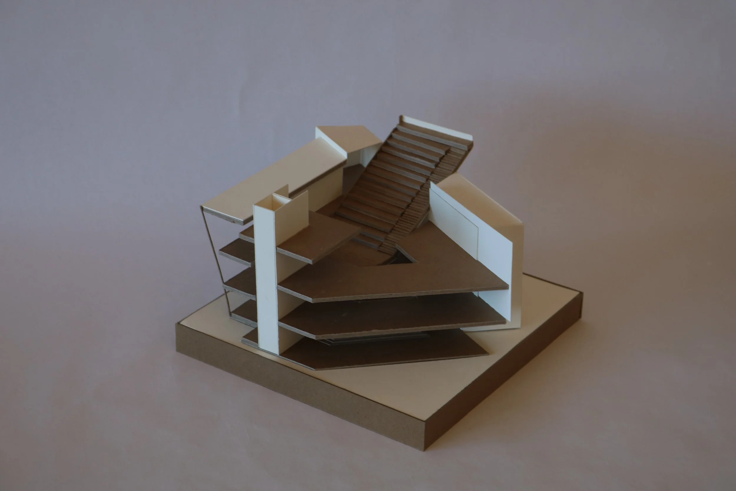 The Museum of Bay Area Art (MOBAA) is dedicated to housing the works of both past and contemporary artists associated with the Bay Area. Recognizing all expressions of art and culture, this building provides open and adaptable exhibition spaces for artists and performers alike to showcase their ideas. Each exhibition is stacked atop one another each providing their own unique stage; auditorium, atrium, open hallways. Although their spaces are formally different, I aimed to have them seep into the other in some way.