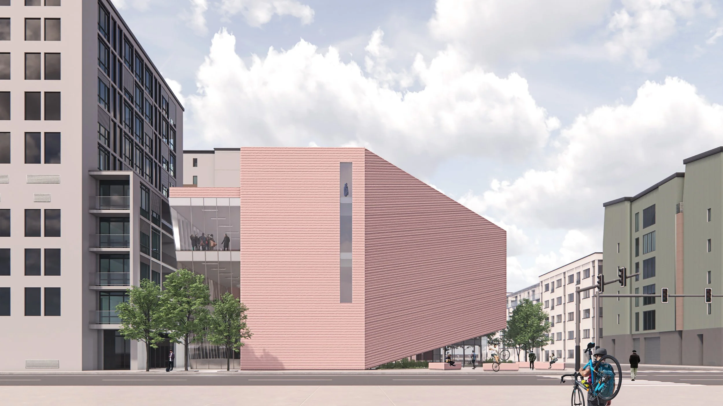 The most prominent feature of this concept can be seen in how the large auditorium sits atop the entire structure. Aside from being yet another floor stacked upon the other, its presence is dramatized as it can be seen from other spaces below. It is as if it is crashing down like a asteroid piercing through the ceiling.